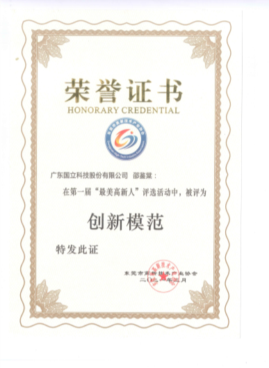 祝賀我司獲得東莞高新優(yōu)秀會員單位、董事長被評為“創(chuàng)新模范”
